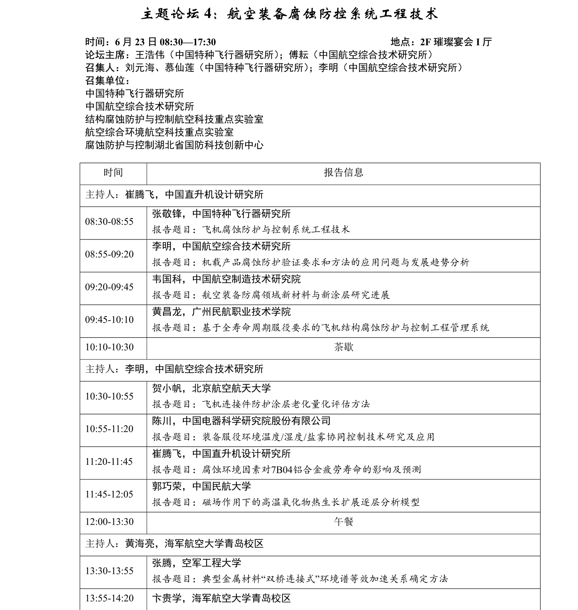 主题论坛4:航空装备腐蚀防控系统工程技术